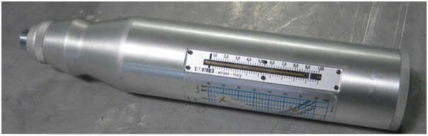 The operation of rebound hammer is shown in the fig.1. When the plunger of rebound hammer is pressed against the surface of concrete, a spring controlled mass with a constant energy is made to hit concrete surface to rebound back. The extent of rebound, which is a measure of surface hardness, is measured on a graduated scale. This measured value is designated as Rebound Number (rebound index). A concrete with low strength and low stiffness will absorb more energy to yield in a lower rebound value.