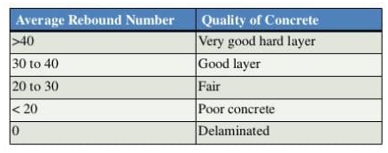 After obtaining the correlation between compressive strength and rebound number, the strength of structure can be assessed. In general, the rebound number increases as the strength increases and is also affected by a number of parameters i.e. type of cement, type of aggregate, surface condition and moisture content of the concrete, curing and age of concrete, carbonation of concrete surface etc.