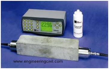 Ultrasonic pulse velocity test consists of measuring travel time, T of ultrasonic pulse of 50 to 54 kHz, produced by an electro-acoustical transducer, held in contact with one surface of the concrete member under test and receiving the same by a similar transducer in contact with the surface at the other end.